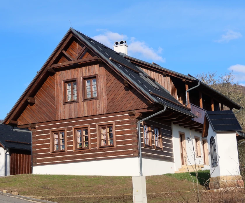 Svatá Panna není jen o wellnessu a dřevě. V interiéru najdete originály od Michaela Rittsteina nebo Olbrama Zoubka, knihovnu z masivního modřínu, kde si v klidu přečtete nejen román, ale třeba i etiketu ze sklenice whisky. A pokud vás přepadne lenora, můžete si ustlat na kachlových kamnech. Ano, přesně jako Honza – s ovčí vlnou pod hlavou a pohledem do plamenů. Zahrada je jako malý ráj. Ovocné stromy, bylinky, kamenné ohniště, pergola s grilem a výčepem. A kdybyste si přivezli elektrokolo nebo elektromobil, můžete je tady nabít. Samozřejmostí je kolárna, lyžárna a cyklo-kompresor. Vše chytře schované v zahradním domku. A ještě jedna třešnička – kaplička před chalupou s originální sochou Madony z místních minerálů. Symbol ochrany, klidu a pokory. I ti největší skeptici tady zpomalí a ztiší se.