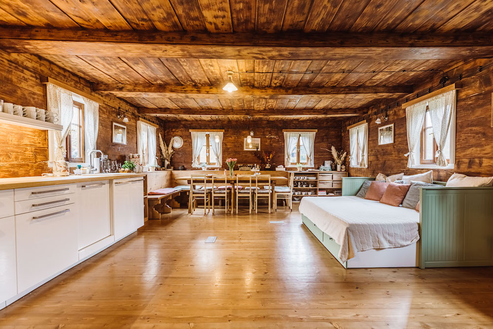Chaloupku pořídili zrekonstruovanou včetně nábytku, v režii nových majitelů bylo vybavení a dekorace. Velká investice byla také do zahrady, do které se pustili na podzim 2019. Za chaloupkou byl pouze svah, dnes už je to plnohodnotná zahrada se spoustou zákoutí a je plná květin, bylinek nebo třeba ovocných keřů. „Řídíme se heslem, že v jednoduchosti je krása a našim cílem je zachovat duch chaloupky. Takže i když v ní jsou moderní prvky- například v kuchyni nebo v koupelnách, najdete tam i věci, které na chalupu patří. Jsou tu truhly, proutěné koše, váhy po babičce apod. Není lehké najít balanc mezi tím, aby tam bylo vše a zároveň interiér působil čistě, ale zatím se nám to daří.“