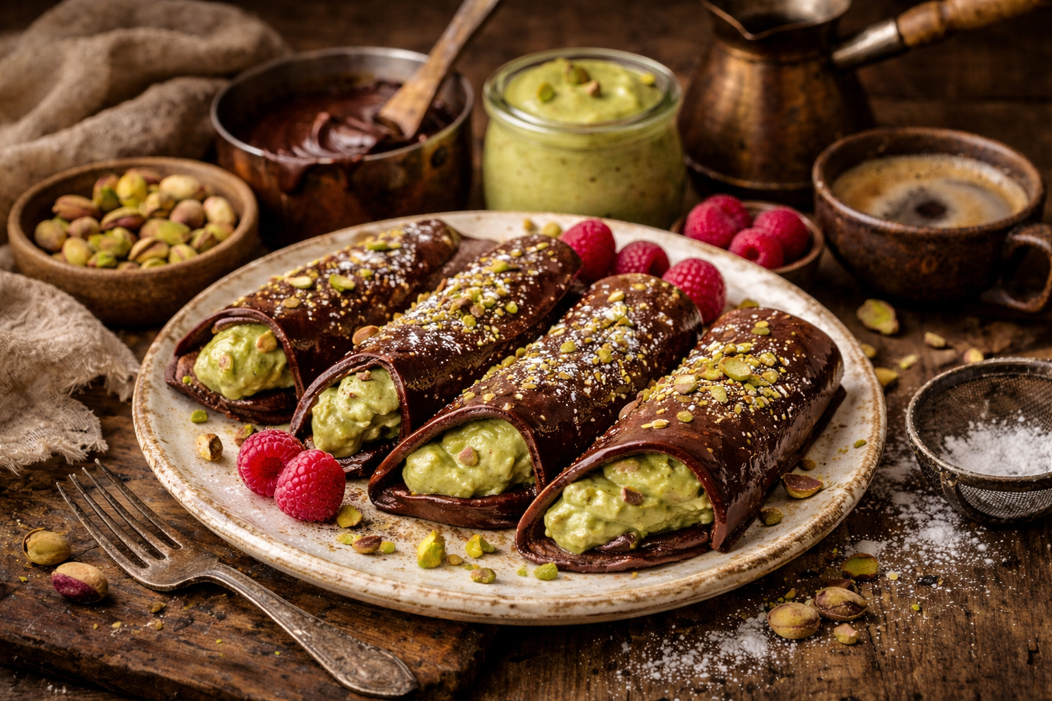 V dnešním receptu hrají velkou roli pistácie. Věděli jste, že bez nich by svět přišel o víc než jen o populární „zelený oříšek“? Pistácie totiž patří mezi potraviny s nejvyšší antioxidační kapacitou, srovnatelnou s borůvkami či granátovým jablkem. Jsou také jedním z mála rostlinných zdrojů, které obsahují všech devět esenciálních aminokyselin. Navíc disponují specifickými karotenoidy (lutein a zeaxanthin), které chrání zrak, a mononenasycenými i polynenasycenými tuky, podporujícími zdravou hladinu cholesterolu. Jsou bohaté na vitamín B6 (důležitý pro metabolismus a imunitu), draslík, hořčík a měď. Měřeno na porci mají ve srovnání s jinými ořechy méně kalorií a tuku a díky vláknině a bílkovinám způsobují pocit sytosti a pomáhají kontrolovat chuť k jídlu. A co víc? Mají poměrně široké využití ve slané i sladké kuchyni. A neexistovaly by bez nich mnohé gastronomické ikony, k nimž patří například pravá sicilská zmrzlina, blízkovýchodní baklava nebo klasická mortadella.