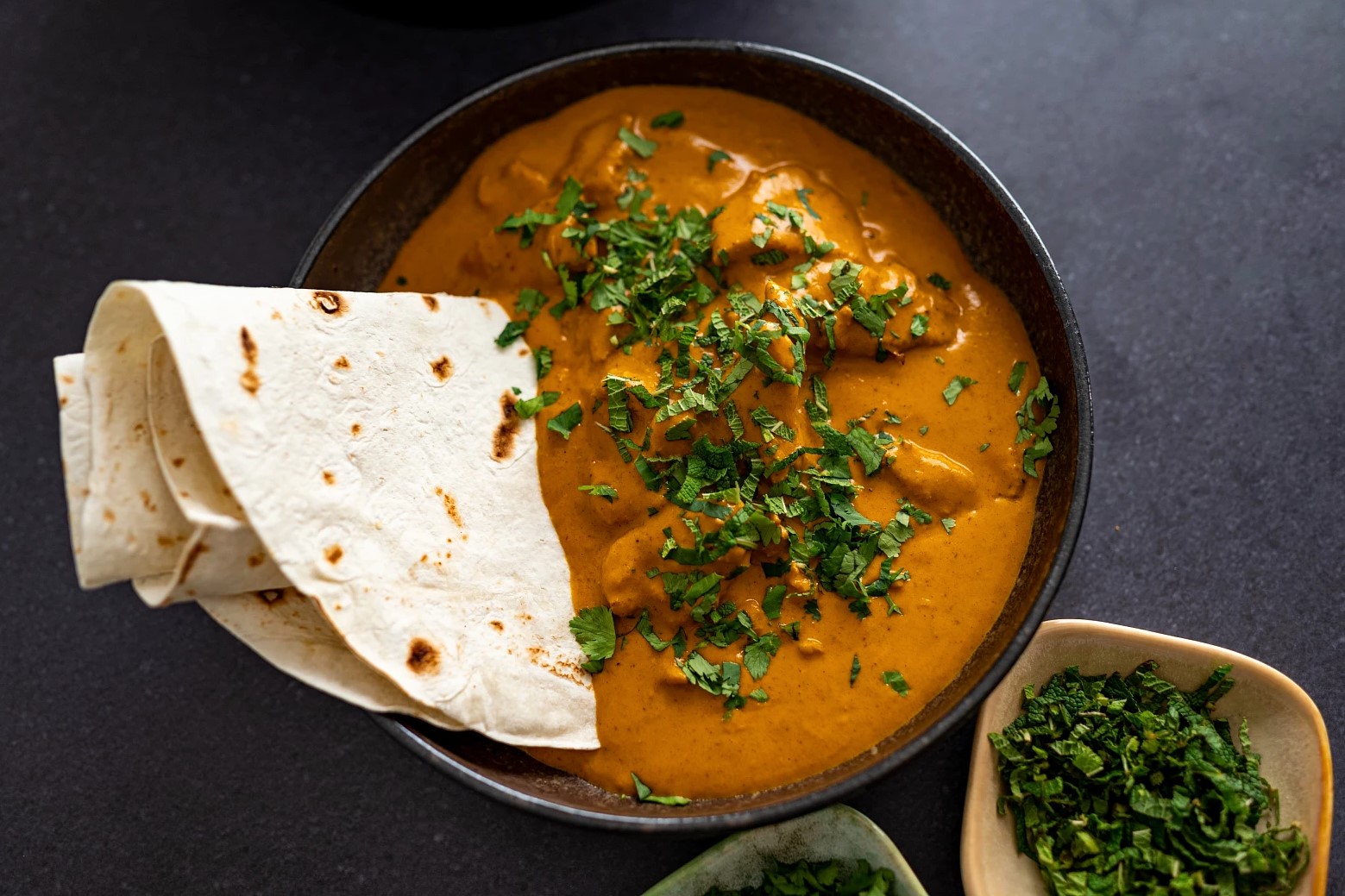 Chicken butter původně vzniklo jako reakce na náročné zákazníky, kteří by nechtěli jíst den staré kuře tandoori, které už nebylo šťavnaté. Řešením bylo namáčení zbytků kuřete v nejjednodušším kari, rychle vyšlehaném, aby se zamaskovala jeho suchost. Omáčka se původně připravovala z drcených čerstvých rajčat a minima koření, včetně garam masaly (hřejivé směsi, která pravděpodobně obsahovala koriandr, kmín a bobkové listy) a špetky chilli. Na závěr se přidalo čerstvě stloukané máslo. Jednou z výzev tohoto pokrmu je vytvořit dokonalou chuťovou harmonii mezi kyselými rajčaty, krémovým máslem a hořkými aromaty, to vše při zachování určité lehkosti. Výsledné jídlo by nemělo být ani příliš pálivé, ani příliš sladké. Jednoduchost pokrmu vedla k mnoha variacím. Někteří přidávají do omáčky cibuli, zázvor a česnek. Jiní používají pro doslazení med. Místo čerstvých se používají konzervovaná rajčata, rajčatové pyré a rajský protlak, aby se dosáhlo jednotné chuti, štiplavosti a hladkosti. Některé recepty vyžadují celé koření, jiné mleté koření, některé směs obojího. Kreativní kuchaři přidávají např. melounová semínka, kešu oříšky, mandle nebo uzené máslo.