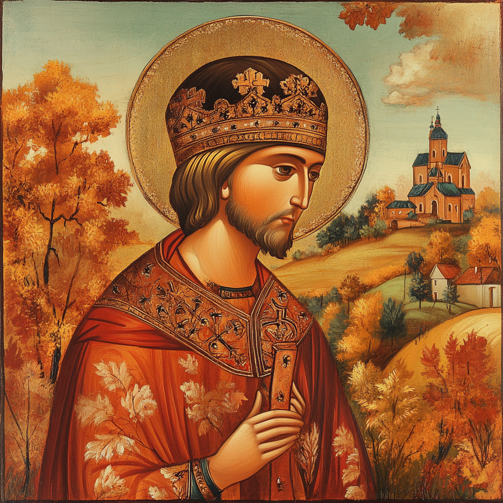 Svatý Václav, kníže Václav I., byl významným českým panovníkem a světcem, který žil na počátku 10. století (asi 907–935). Pocházel z rodu Přemyslovců – jeho otcem byl kníže Vratislav I., matkou kněžna Drahomíra a dědečkem první historicky doložený přemyslovský kníže Bořivoj I. O Václava se převážně starala jeho babička svatá Ludmila, která výrazně ovlivnila jeho křesťanskou výchovu. Václav byl známý svou dobrosrdečností a laskavostí. Na svou vřelou povahu tento lidem zbožňovaný panovník, nakonec tragicky doplatil. Jeho úzká spolupráce s církví vyvolala nejen hněv mezi pohanskou šlechtou, ale také u jeho vlastního bratra Boleslava I. Václavův osud se začal lámat v roce 929, kdy byl poražen německým králem Jindřichem I. Saským. Aby zajistil mír, souhlasil Václav s placením tributu, což Boleslava rozzuřilo. Nesouhlas s tímto politickým rozhodnutím vedl k rozepři mezi bratry, která vyvrcholila 28. září 929, kdy byl Václav zákeřně zavražděn vlastním bratrem Boleslavem, který okamžitě po jeho smrti převzal trůn. Bratr Boleslav neměl tak zkažené srdce a dohnalo ho svědomí. O devět let později, v roce 938, ve snaze ulevit si od pocitu viny, vykonal veřejné pokání. Na důkaz upřímné lítosti nechal vyzvednout Václavovy ostatky a slavnostně je převezl z Boleslavi na Pražský hrad. Tam je uložil do nově budované rotundy svatého Víta. Tímto činem nejenže přispěl k Václavovu svatořečení, ale také položil základ svatováclavské legendy, která dodnes žije v srdcích lidí a je důležitou součástí české historie.