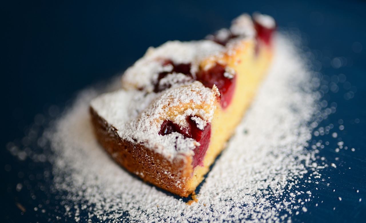 Pečte asi 45 minut. Jestli je těsto hotové, ověřte zapíchnutím špejle do středu moučníku – měla by být suchá. Nechte vychladnout a před podáváním posypte moučkovým cukrem.