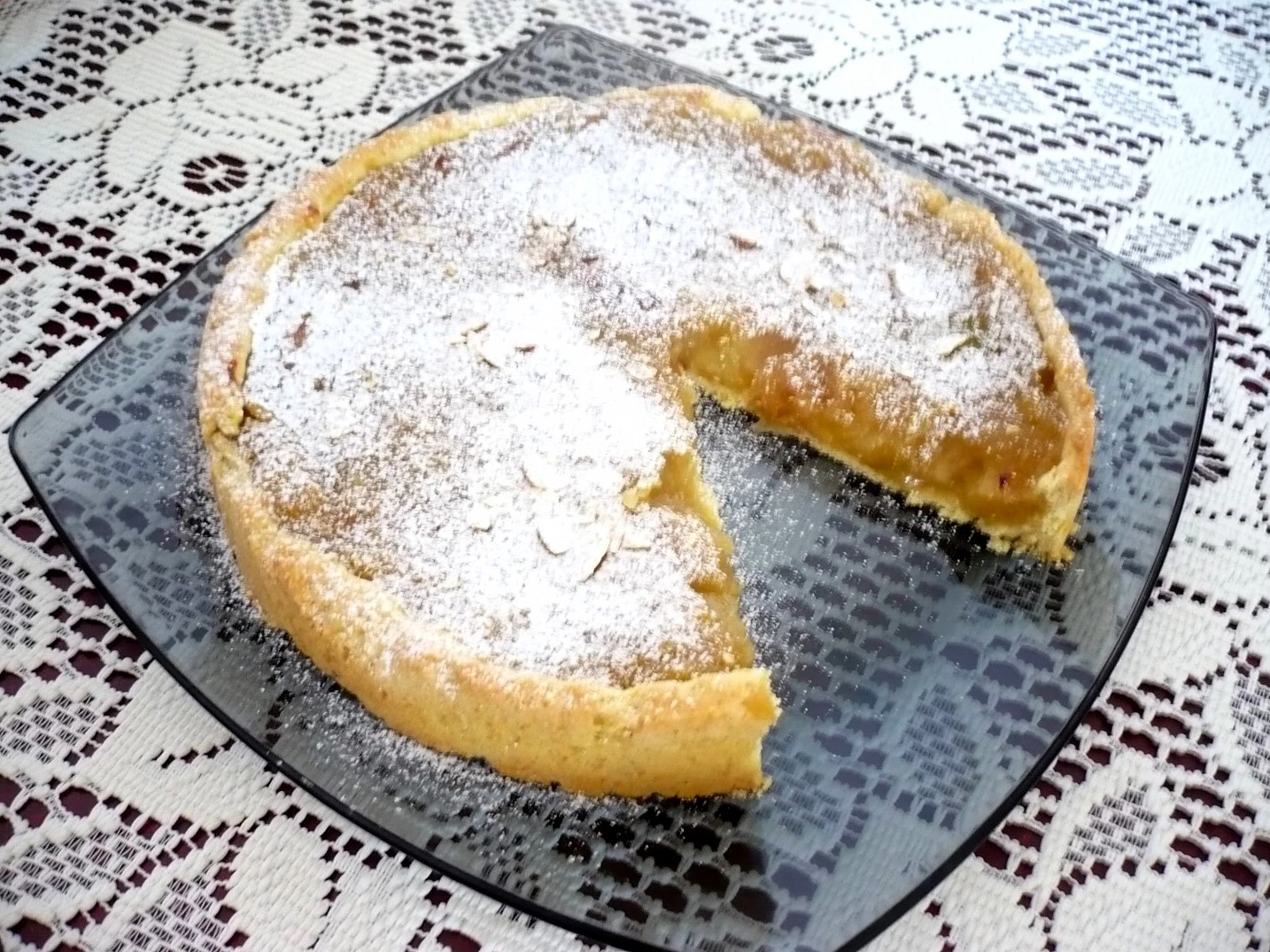 Dýni a jablka oloupeme, vydlabeme jádra a nakrájíme na kousky. Lehce podlijeme vodou, podusíme, podle chuti přidáme cukr, citronovou kůru i šťávu, skořici a uvaříme na hustší kaši. Z mouky, másla, soli, prášku do pečiva a asi 3 lžic studené vody uhněteme těsto. Koláčovou formu vymažeme tukem a vysypeme moukou. Naplníme připraveným těstem, pak přidáme dýňovou kaši. Posypeme spařenými oloupanými mandlemi. Pečeme ve vyhřáté troubě na 180 °C po dobu asi 30 minut. Upečenost kontrolujeme špejlí, kterou zapíchneme do koláče a po vytažení musí vyjít suchá.