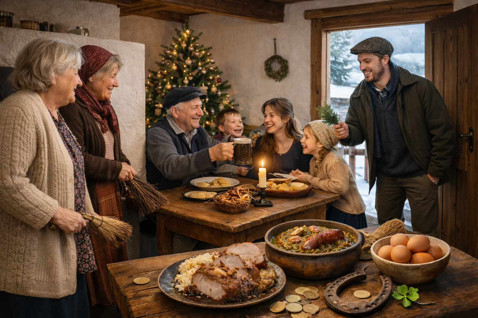 Zatímco dnešní oslavy často vrcholí ohňostrojem a bujarým veselím, dříve byl Nový rok spíš klidný a rozvážný. Patřil rodině, společnému jídlu a symbolickým úkonům. Lidé věřili, že první den roku nastavuje tón pro všechno další. Proto se dbalo na dobré vztahy, pohodu v domě a čistý stůl. Na venkově se vstávalo brzy, rodina se scházela u snídaně a přálo se štěstí. Žádné hádky, žádný spěch. Všechno mělo svůj řád.