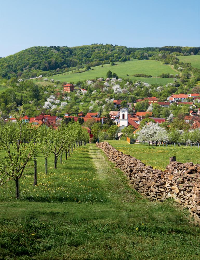 Slovácká vesnice ukrytá v kopcích Bílých Karpat byla během naší návštěvy vyzdobená jako nevěsta. Při pohledu z okolních kopců se pod korunami právě odkvétajících stromů červenaly střechy, nad nimiž se tyčí věž místního kostela, a kolem se rozléhal dětský zpěv. Hodina zpěvu v místní škole s otevřenými okny rozezpívala celou ves!
