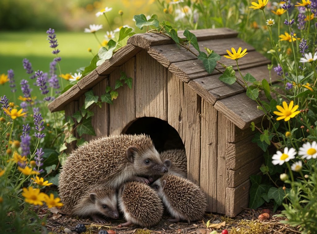 Obvykle ježkům musí jako úkryt stačit hromada spadaného listí a větví. S naší pomocí jim ale můžete vybudovat pohodlnější úkryt. Na ježčí domek stačí zbytky dřeva nebo starých cihel a sláma či suché listí na výstelku. Možností je koupit domeček i hotový, nebo jako dřevěnou stavebnici, jejíž sestavování bude skvělou zábavou nejen pro vás, ale i pro vaše ratolesti. Jak má takový vhodný příbytek pro ježka vypadat? Vstup by měla tvořit úzká chodba (asi 13 x 13 cm) nebo předsíňka s přepážkou, aby se dovnitř snadno nedostal žádný predátor. Ložnici vystelte suchým listím nebo slámou (k některým kupovaným domkům se sláma už dodává). Vhodné jsou navíc boudičky z těžkého materiálu, které neodsune třeba pes. Pak hotový ježčí příbytek položte na klidné místo v zahradě tak, aby byl jeho vchod alespoň částečně chráněný před nepřízní počasí. Ideální je to v blízkosti keřů nebo jiných přirozených schovávaček. A teď už jen stačí, aby svůj nový domov ježci našli. Dejte tomu čas. Rozhodně nelákejte pichláče do domku na jídlo. Jídelnu by měli mít jinde, ne tam, kde budou hledat útočiště. Už proto, že byste mohli pomocí ježčích granulí nebo paštik přilákat nejen vítané budoucí obyvatele, ale i predátory. Dospělému ježkovi sice kočka nebo kuna neublíží, ale může ohrozit mláďata. Větší problém pak představují psi, a to i ti s dobrými úmysly. Při hře totiž mohou ježka vážně zranit. Největší nebezpečí však ježkům hrozí od nás lidí, a tak jim to na své zahradě můžeme alespoň trochu vynahradit.