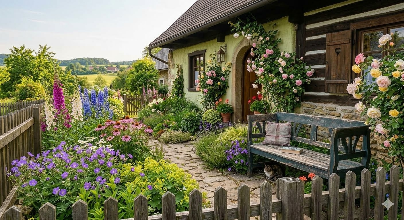 Sortiment rostlin používaný v předzahrádkách vždy vycházel z místních podmínek. Naši předci okrasné květiny obvykle nevysévali, a přesto se díky samovýsevu na zahradě objevovaly rok co rok. Časté byly druhy přirozeně rostoucí v okolní krajině, na lukách, v lesích - plícník, sasanka, kostival, kosatec, máta, šalvěj nebo bledule. Mezi samovýsevné letničky pak paří zářivě kvetoucí měsíček, letní fialy, chrpy, černucha, vonná rezeda, popínavý hrachor a laskavec. Ty doplňovaly rostliny se symbolickým významem – lilie, rozmarýn nebo ty s léčivými účinky a dále rostliny vonné. Nikdy nechyběly růže - pěstovaly se však jen „plané“ druhy, které měly jednoduché květy a krásně voněly. Dnes lze použít například růži keltskou či stolistou. Výjimkou v předzahrádce nebyla ani zelenina. Naopak sem nepatří žádná exotika, keře s barevnými listy, ani ty pečlivě tvarované. Také živý plot vždy rostl divoce a samovolně, zastřihoval se maximálně v případě, kdy se rozrostl příliš. Předzahrádka byla vždy obehnána plaňkovým plůtkem. Ne však proti zlodějům či vandalům, ale to proto, aby na ni nemohla chodit drůbež.