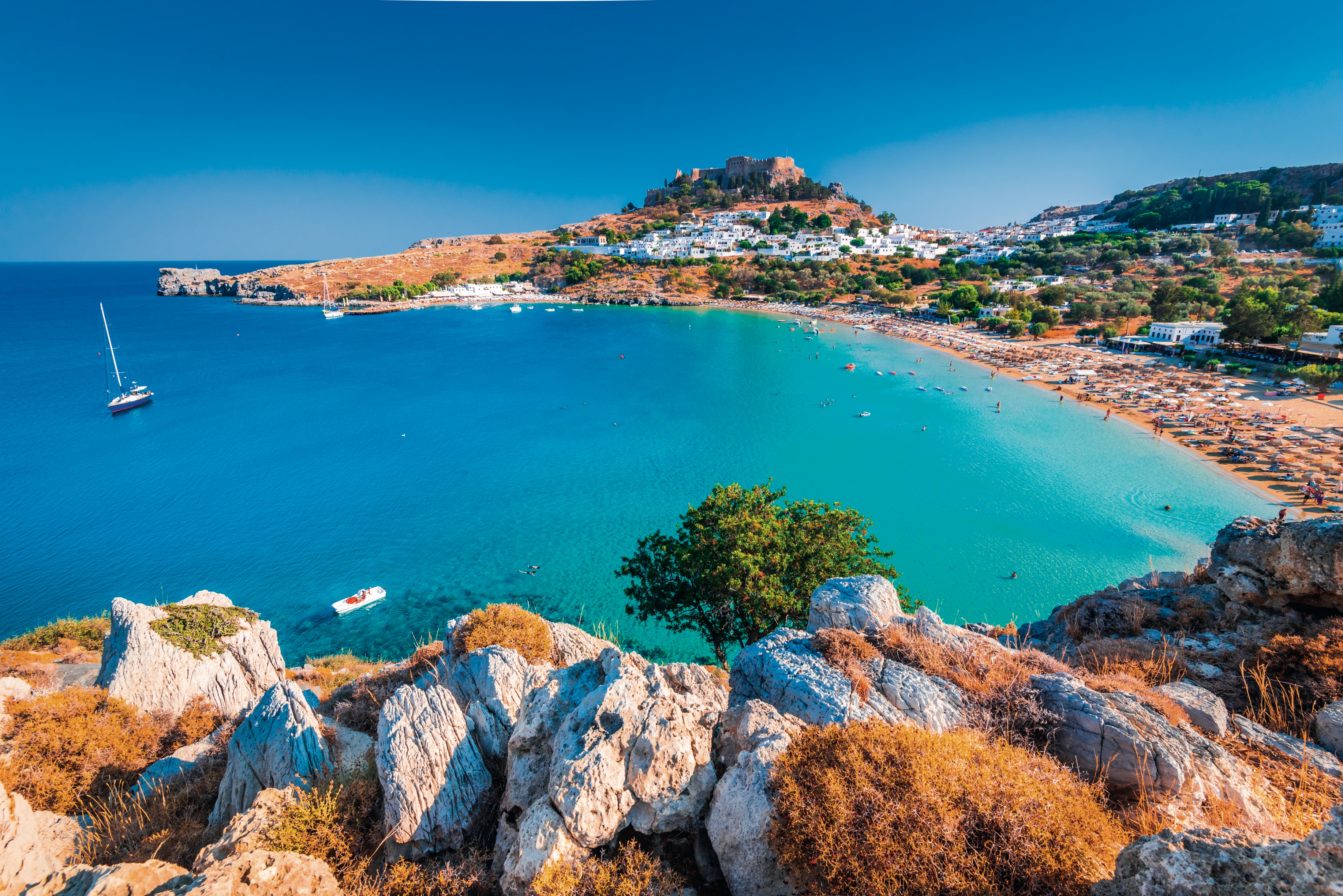 Dalším místem, které musíte na ostrově navštívit, je legendární vesnička Lindos. Její bílé domky září do dálky a projít se zdejšími romantickými uličkami je téměř povinnost každého návštěvníka ostrova. Nad městem ční starověká akropole. Vystoupat sem je trochu fuška, ale ten rozhled za to opravdu stojí. Jen prosím odolejte pokušení nechat se nahoru vyvézt zdejším taxi – tedy oslíky. Tito utrápení chudáčci si svůj osud opravdu nezaslouží. Raději se pak odměňte za výstup koupelí na blízké pláži v azurově čisté vodě. Je tak skvělá, jak vypadá z pohledu shora.