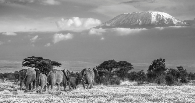 David Yarrow říká: „Amboseli je pro mě oblíbeným místem, kde mohu fotografovat tato neuvěřitelná zvířata. Je to divoké, živelné jeviště, domov více než dvou tisícovek slonů, navíc skvělá lokalita pro fotografování slonů s obrovskými kly v jejich přirozeném prostředí. Jakmile jednou spatříte tak ohromného slona, je vám jasné, že nic podobného už ve své kariéře nezažijete. Vždycky jsem měl a budu mít úctu k jejich síle, velikosti a téměř lidské inteligenci, která jim jasně vyzařuje z očí.“