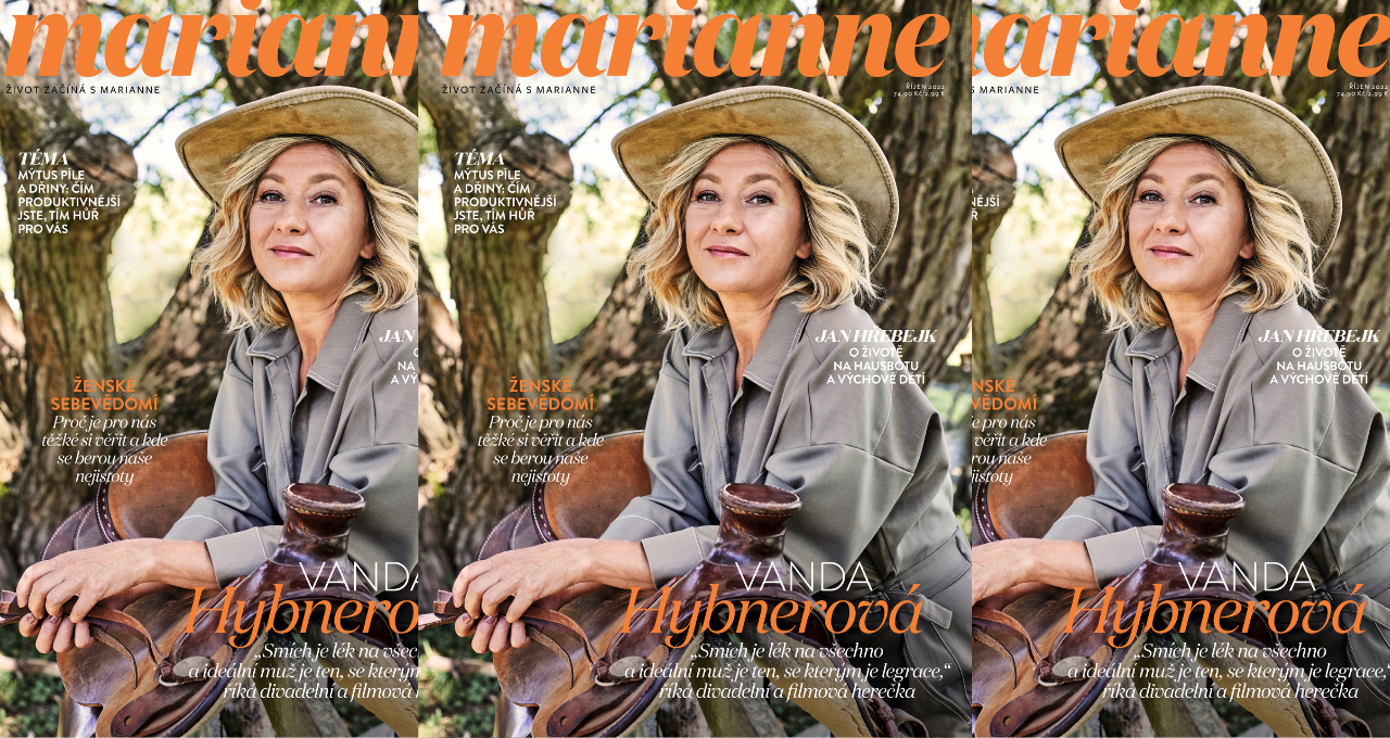 Říjnová Marianne potěší všechny milovníky inspirativních rozhovorů. Titulní rozhovor tentokrát patří herečce Vandě Hybnerové, která nás pozvala na svůj ranč na Vysočině. V rozhovoru prozradila, co ji teď nabíjí energií, a jak se jí žije ve dvou odlišných světech. Pokud chcete nastartovat svou kariéru, pak vás potěší rozhovor s Veronikou Soukupovou, průvodkyní sítí LinkedIn. V říjnovém čísle dostali slovo také muži. Za přečtení stojí rozhovor s Janem Hřebejkem nebo se spisovatelem Štěpánem Javůrkem. A módní redaktorka Eliška Vrbová si zase popovídala s návrhářkou rafinovaného spodního prádla Terezou Vu.