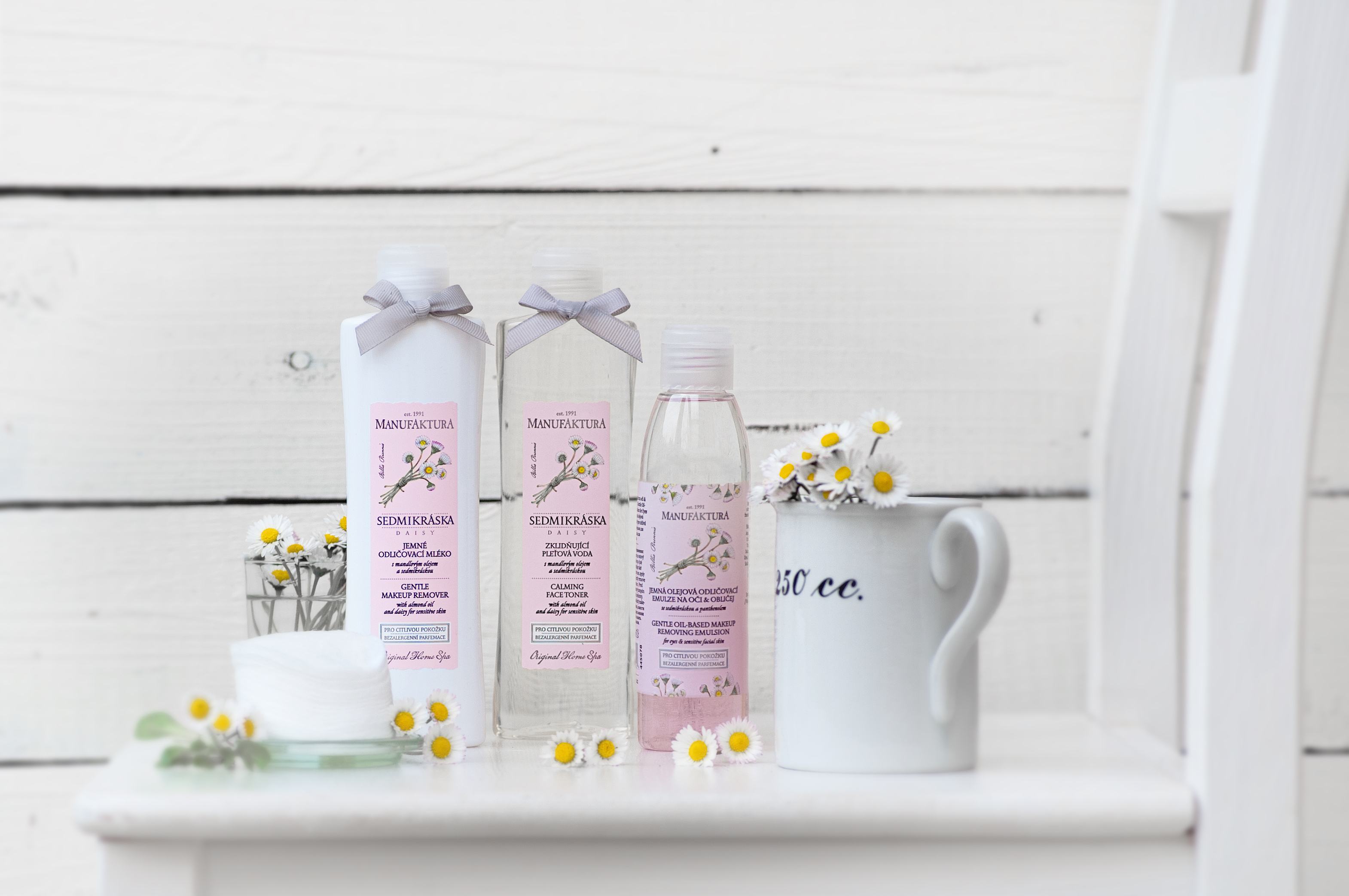 Skvělým kosmetickým dárkem je také extra jemná a šetrná odličovací kosmetika Sedmikráska od české značky Manufaktura. Tato řada je založena na vysokém obsahu přírodních ingrediencí bez alergenních parfémů, parabenů, alkoholu a ropných produktů. Skvěle se hodí pro citlivou pleť.