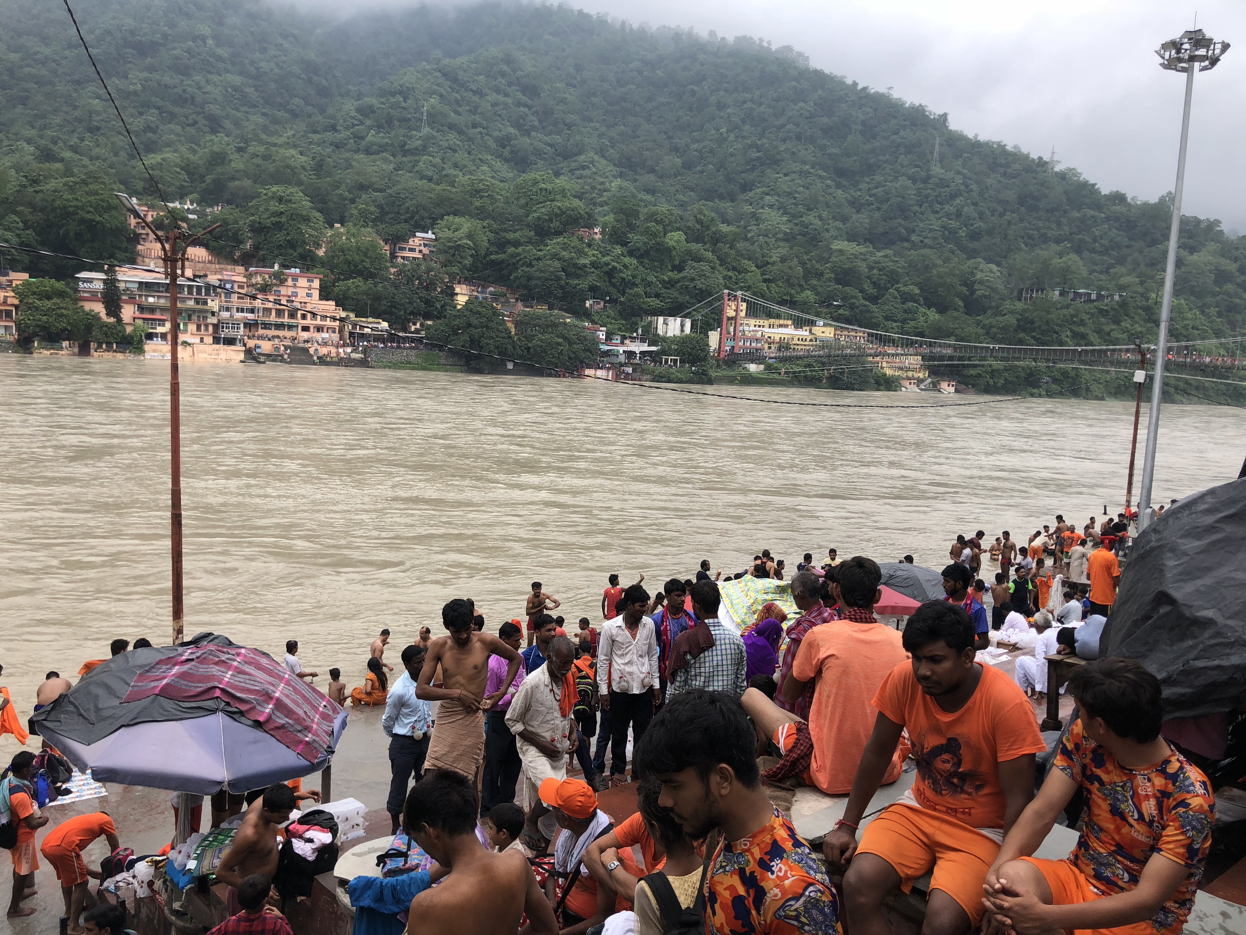 V tuhle chvíli je v Rišikéši Kanwar Mela festival. Schází se sem lidé z celé Indie, jdou i stovky kilometrů ke svaté řece Ganze, kde si naplní láhev její vodou a potom jí použijí při ceremonii. Na ulici se pohybují téměř výhradně muži a většina z nich nikdy v životě neviděla “zápaďana”, neustále se se mnou fotí, podávají mi ruce. Místní tvrdí, že jsme pro ně jako filmové hvězdy, zajímavý zážitek. Díky festivalu a obrovskému množství lidí v ulicích tady nejezdí doprava, šla jsem tak pěšky několik kilometrů s krosnou, ulice plné slavících Indů, krav, opic, psů, koček, lidí. V té směsi těžko rozlišovat, všichni jsou tak nějak na stejné úrovni.