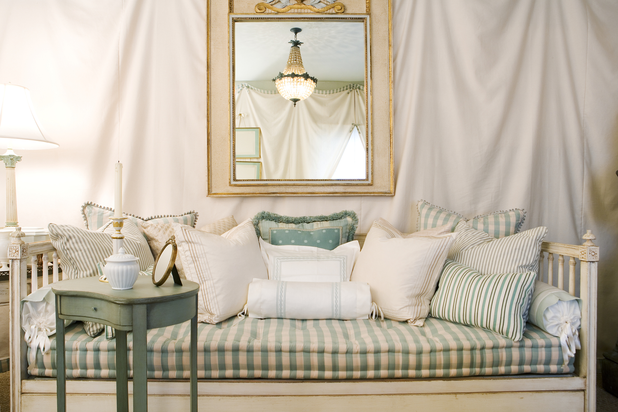 Odborníci na interiér doporučují, abyste v jemných barvených odstínech drželi také přehozy na postele, závěsy nebo polštáře na sedací soupravě. Jednoduše řečeno se vyhýbejte křiklavým barvám, které nenavozují romantickou atmosféru. Součástí schabby chic interiéru je i prvek „honosnosti“. Záleží pouze na vás, co považujete za honosné, avšak krok vedle neuděláte se vzory! Velmi populární je francouzský Toile-de-Jouy nebo klasický potisk růží či ptáků, který vyniká na závěsech i polštářových povlacích.