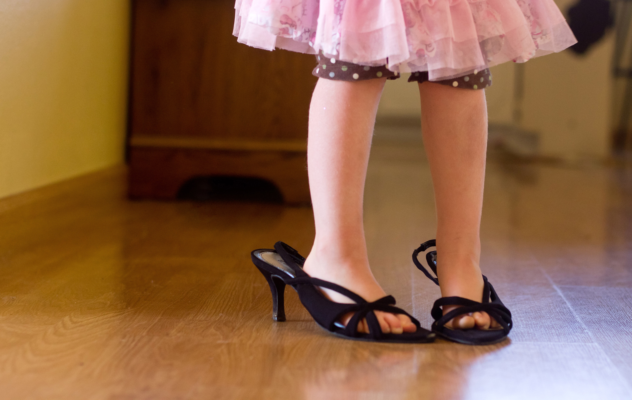 Zajímavé na celé věci je, že recipročně to nefunguje. Jsme s dcerami přibližně stejně velké, ve všech rozměrech, takže bych si k nim také mohla skočit pro tričko s Mickey Mousem, když mě popadne záchvat infantilní nálady. Nebo bych si ráda vzala kabelku, kterou se pyšní moje nejstarší dcera. Hodila by se mi k lodičkám, které nazuju jednou za měsíc a kupovat k tomu druhý drahý kousek stejně provedený, jako už doma máme, se mi vážně jeví jako zbytečná investice.