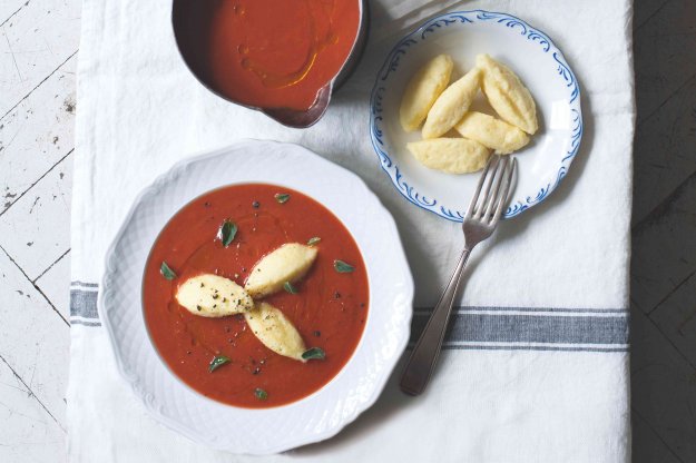 2 Z těsta dvěma lžičkami vykrajujte nočky, pokud se na lžičky těsto lepí, namočte je pokaždé do vody. Nočky ihned vkládejte do vroucí osolené vody. Vařte je 2–3 minuty a během vaření je otočte. Vyjměte je sítkem, nechte okapat a vložte do polévky až při podávání.