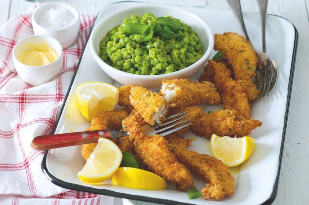 Rychlorecept: Rybí prsty v bylinkové strouhance s hráškem