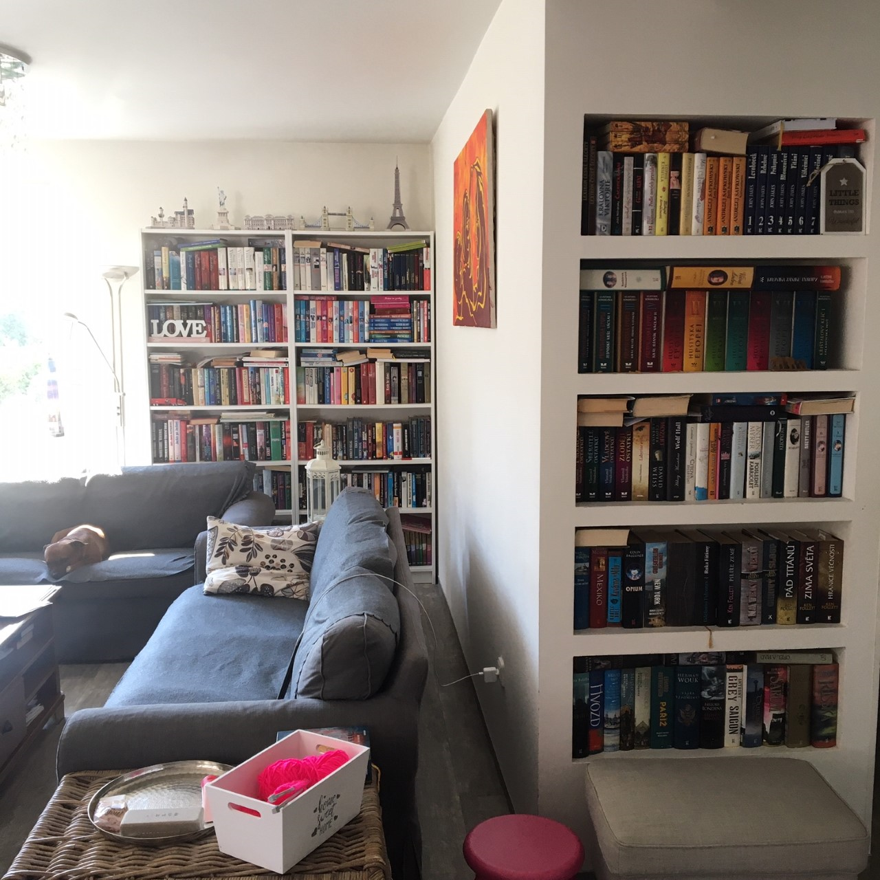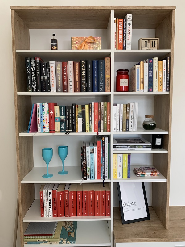 Tak dlouho jsem si přála mít pořádnou knihovničku, až se mi to letos v dubnu splnilo! Jsem ráda, že jsem dokázala knížky protřídit a vzít si s sebou do nového bydlení pouze tituly, které se mi hezky četly. :-)