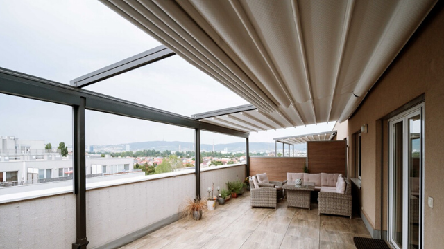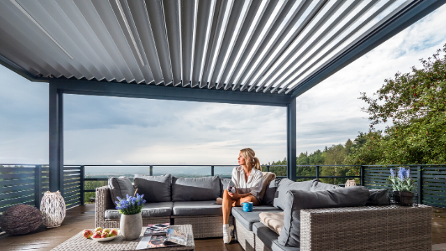 Další velmi oblíbenou pergolou je pergola s posuvnou střechou EVA. Ta vám umožní nastavit si stínění přesně tak, jak potřebujete. A v případě, že si posezení na zahradě chcete užívat po celý rok, uvidíte na veletrhu FOR PASIV i zimní zahradu Gardenroom.